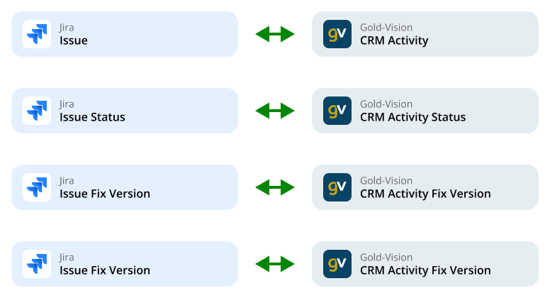 With a single source of truth, both Gold-Vision and Jira users can access essential, up-to-date information. CRM users see Jira references, statuses, and fix versions, while Jira users gain crucial customer context.,